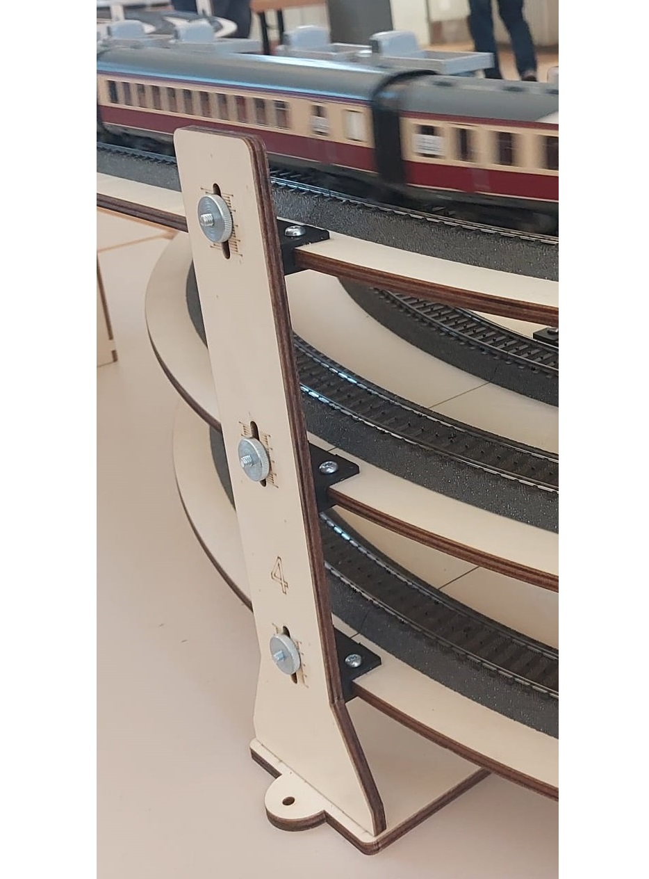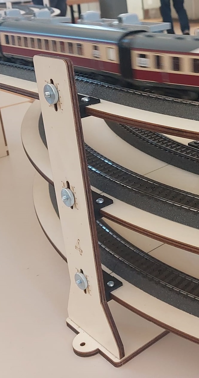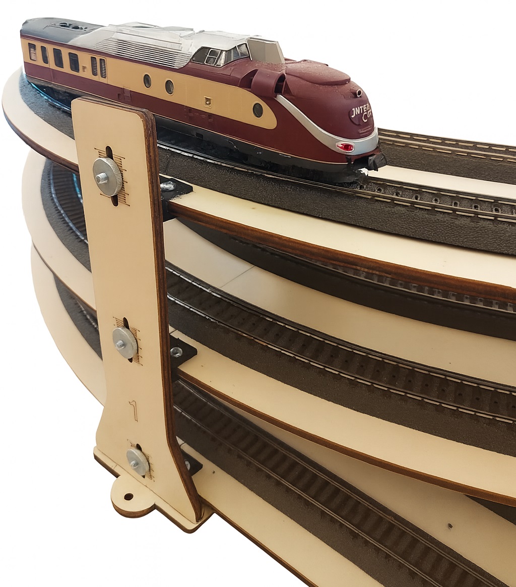 Lasercut Variante mit Kunststoff Haltern zum nachstellen der Steigung bzw. Kurvenneigung.