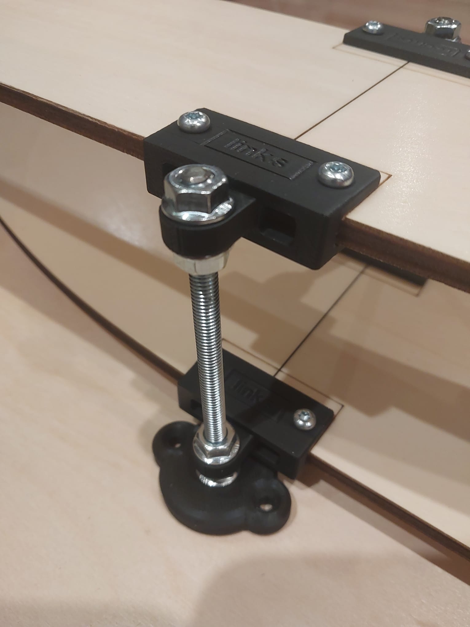 Kunststoffhalter mit Gewindstangen. Keine Verbindungsplatte notwendig ==> Hohe Durchlasshöhe.